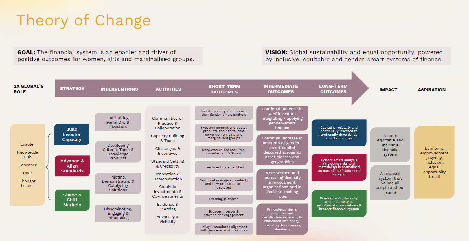 Theory of Change2X Global is transforming the financial system to enable and drive positive outcomes for women, girls, and marginalised groups.